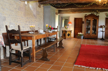 You will be delighted by the exceptional character of this room full of history with its antique beams and full equipment of the kitchen will allow you to perfect the best receptions, family gatherings or dinners with friends.